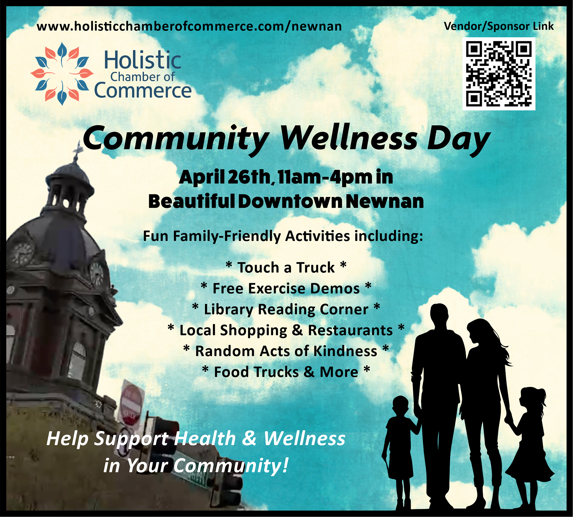 I create social media and more for the Atlanta-Newnan Chapter of the Holistic Chamber of Commerce. Our 9th annual Community Wellness Day event is coming up in Downtown Newnan, GA. Hope to see you there!